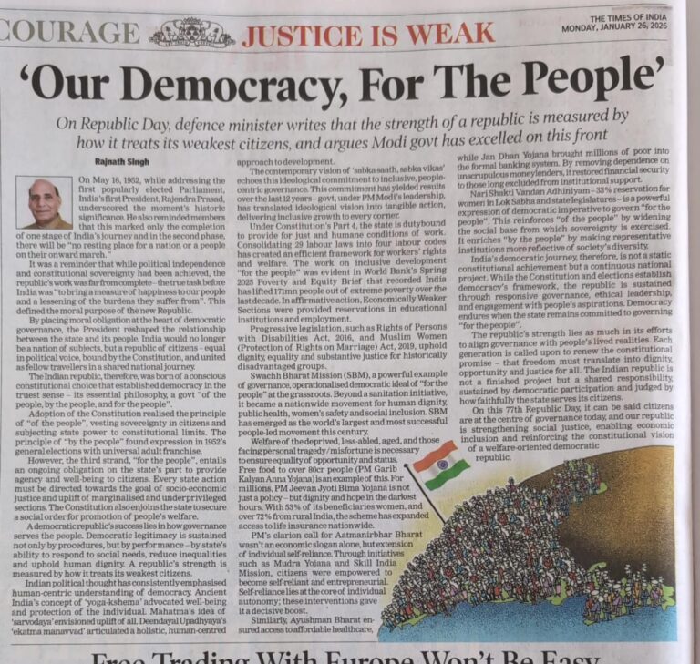 On 16th May 1952, while addressing the first popularly elected Parliament, the first President of India, Dr Rajendra Prasad, underscored
