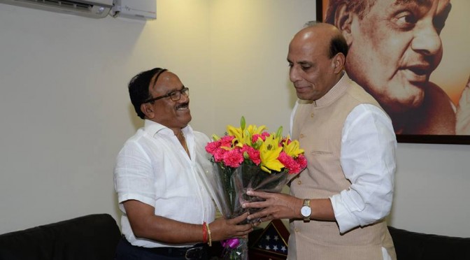 गोवा के मुख्यमंत्री श्री लक्ष्मीकांत पार्सेकर जी गृहमंत्री श्री राजनाथ सिंह जी के आवास पर मुलाक़ात करते हुए. (09-11-2014)