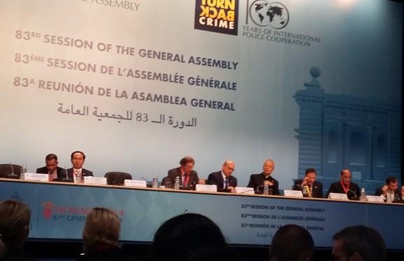 The Union Home Minister, Shri Rajnath Singh along with the other participants at the 83rd General Assembly of Interpol, in Monaco on November 04, 2014. HM addressed the Interpol General Assembly meet. He became the first person ever to give speech in Hindi at Interpol.