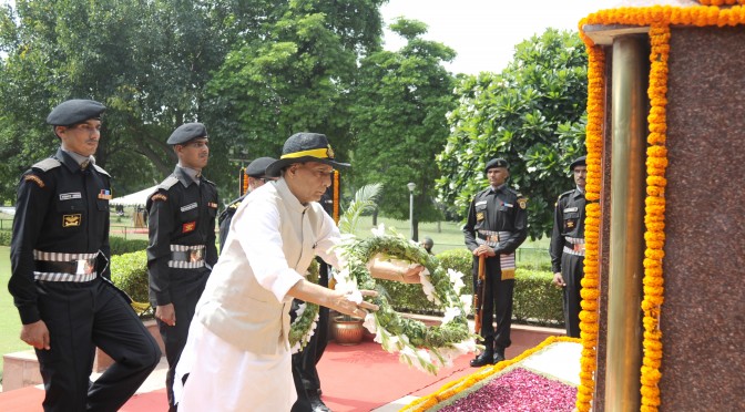 The Union Home Minister, Shri Rajnath Singh paying homage to the Martyrs of NSG, at Martyrs’ Memorial, in Manesar Garrison, Haryana on September 16, 2014.