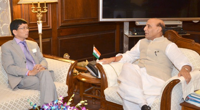 The Director General of Railway Protection Force, Shri S.K. Bhagat calling on the Union Home Minister, Shri Rajnath Singh, in New Delhi on May 05, 2016.
