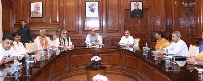 A delegation of the Members of Parliament from Bihar calling on the Union Home Minister, Shri Rajnath Singh in New Delhi on May 10, 2016.