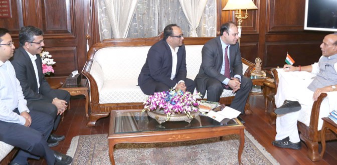 A delegation led by the President, Indian Chamber of Commerce, Shri Shiv Siddhant Kaul meeting the Union Home Minister, Shri Rajnath Singh in New Delhi on May 10, 2016.