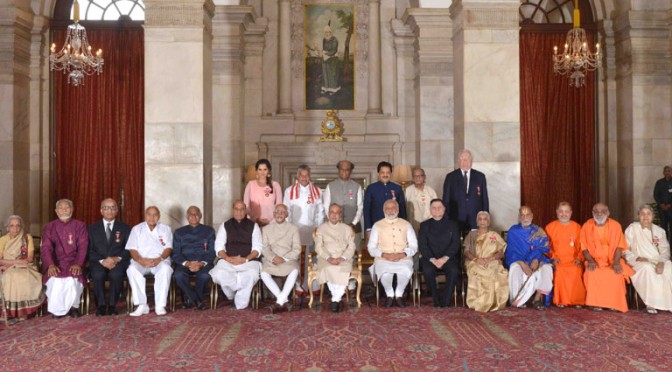 The President, Shri Pranab Mukherjee, the Vice President, Shri M. Hamid Ansari, the Prime Minister, Shri Narendra Modi and the Union Home Minister, Shri Rajnath Singh with the awardees, at a Civil Investiture Ceremony, at Rashtrapati Bhavan, in New Delhi on April 12, 2016. The President, Shri Pranab Mukherjee, the Vice President, Shri M. Hamid […]
