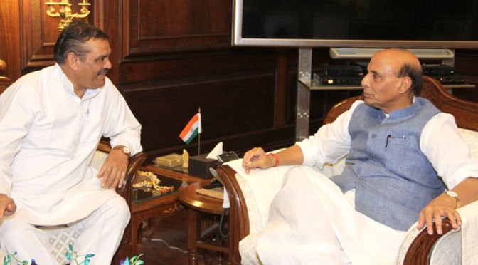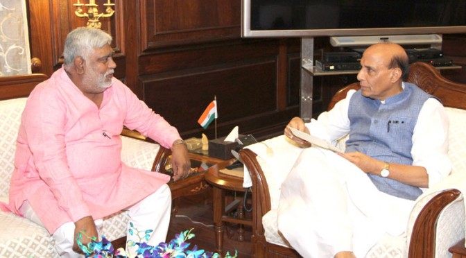 The Minister of State for Social Justice & Empowerment, Shri Vijay Sampla calling on the Union Home Minister, Shri Rajnath Singh, in New Delhi on April 11, 2016.
