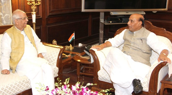 The Governor of West Bengal, Shri Keshari Nath Tripathi calling on the Union Home Minister, Shri Rajnath Singh, in New Delhi on April 05, 2016.