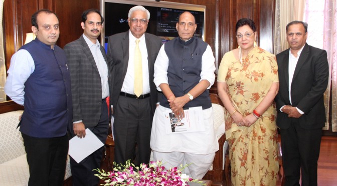 A delegation led by the National President, Indo-American Chamber of Commerce, Dr. Lalit Kanodia calling on the Union Home Minister, Shri Rajnath Singh, in New Delhi on April 04,2016.