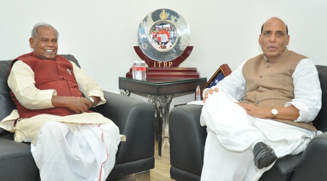 The Chief Minister of Bihar, Shri Jitan Ram Manjhi calling on the Union Home Minister, Shri Rajnath Singh, in New Delhi on February 15, 2015.