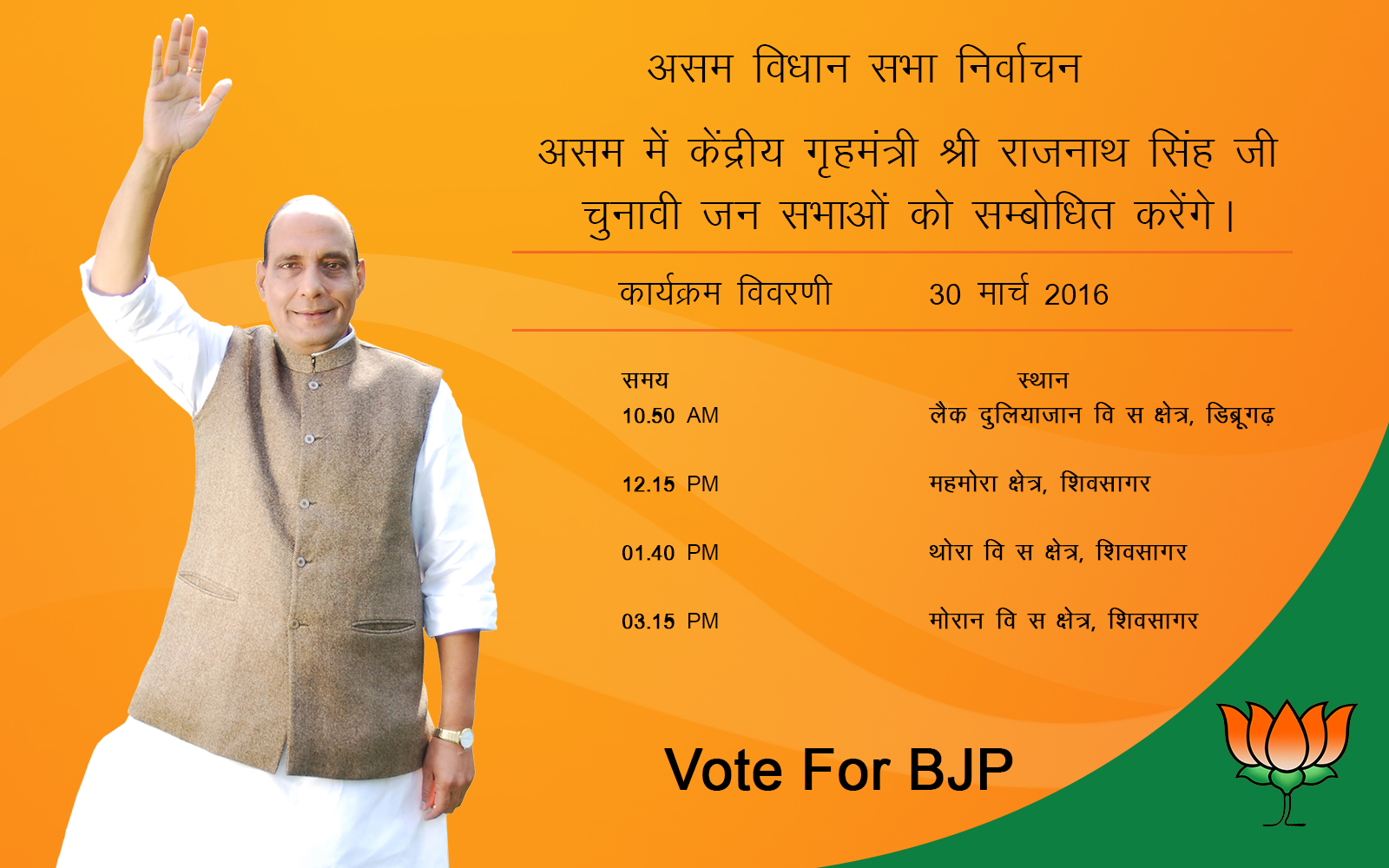 असम में केंद्रीय गृहमंत्री श्री राजनाथ सिंह जी का चुनावी जन सभा कार्यक्रम दिनांक :- 30 मार्च 2016.