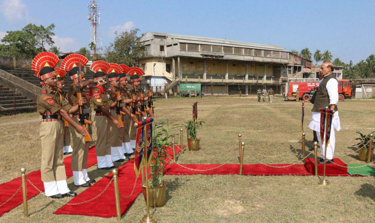The Union Home Minister, Shri Rajnath Singh receiving the Guard of Honour, at Karimganj, Indo-Bangladesh border, in Assam on January 03, 2016. Union Home Minister Shri Rajnath Singh is being welcome by BSF official at the Karimganj in Indo Bangladesh Boarder on 3rd January 2015