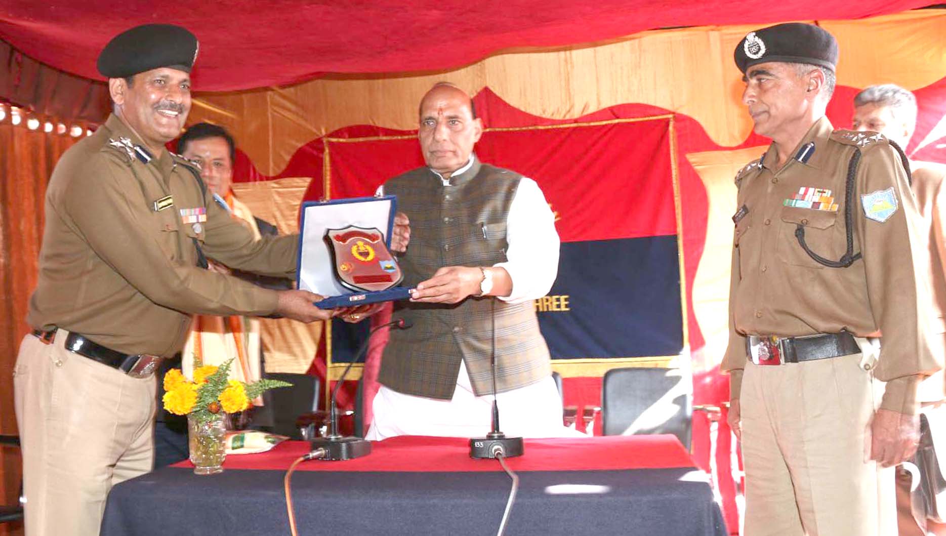 Union Home Minister Shri Rajnath Singh is being welcome by BSF official at the Karimganj in Indo Bangladesh Boarder on 3rd January 2015 .