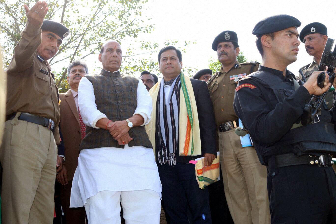 The Union Home Minister, Shri Rajnath Singh in a group photograph with the BSF Jawans, at Karimganj, Indo-Bangladesh border, in Assam on January 03, 2016. The Union Home Minister, Shri Rajnath Singh in a group photograph with the BSF Jawans, at Karimganj, Indo-Bangladesh border, in Assam on January 03, 2016.