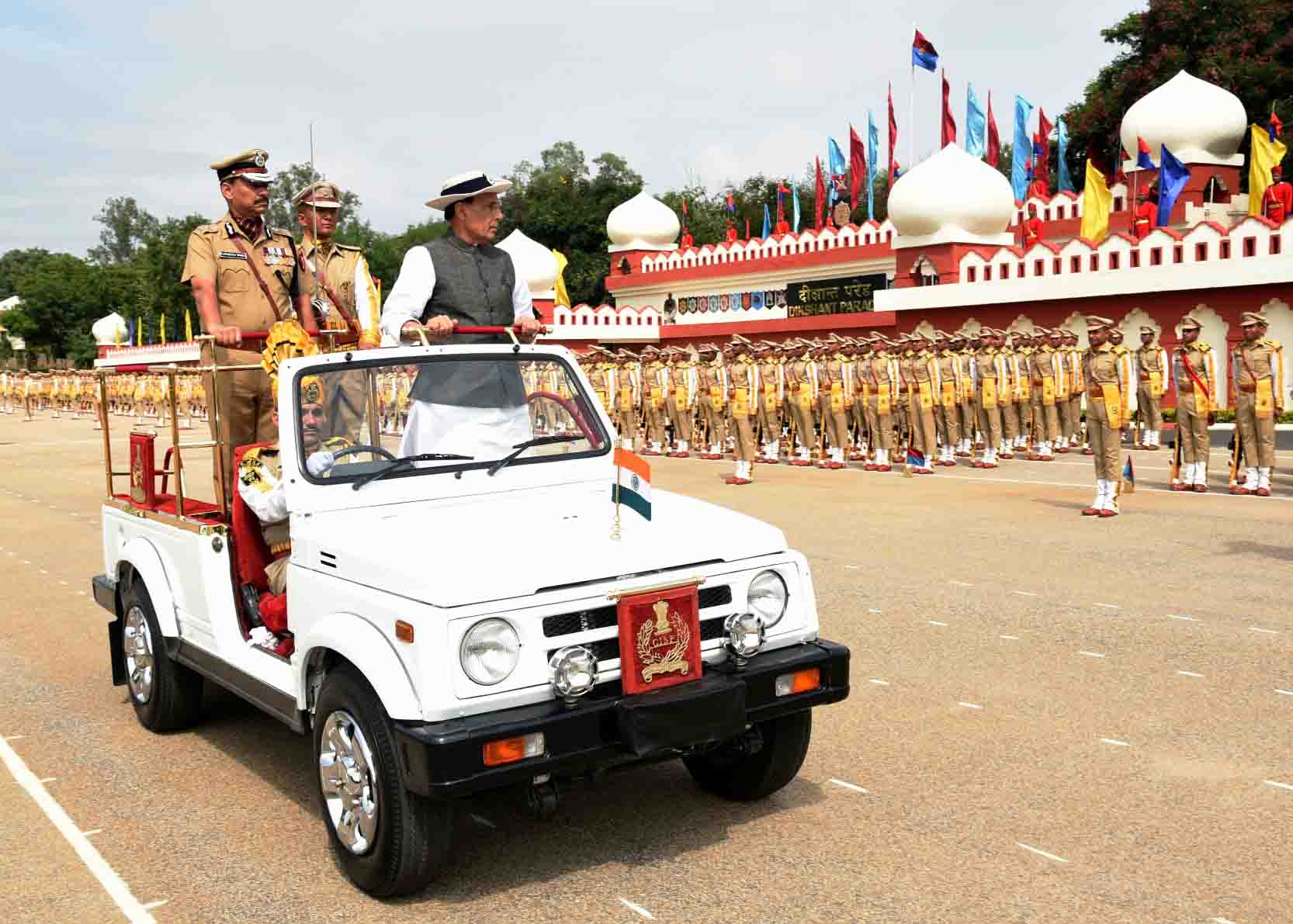 हैदराबाद में CISF के पासिंग आउट परेड का निरीक्षण करते केंद्रीय गृहमंत्री श्री राजनाथ सिंह जी September 8, 2015 .