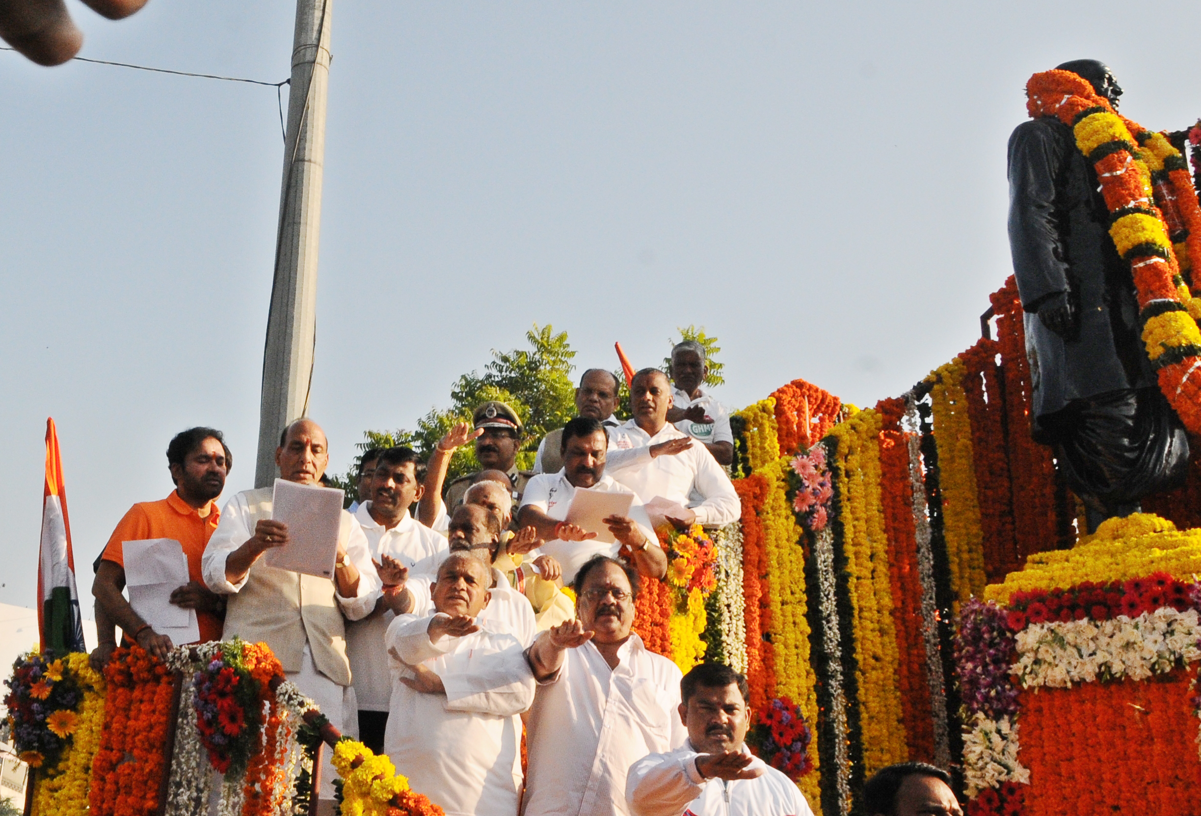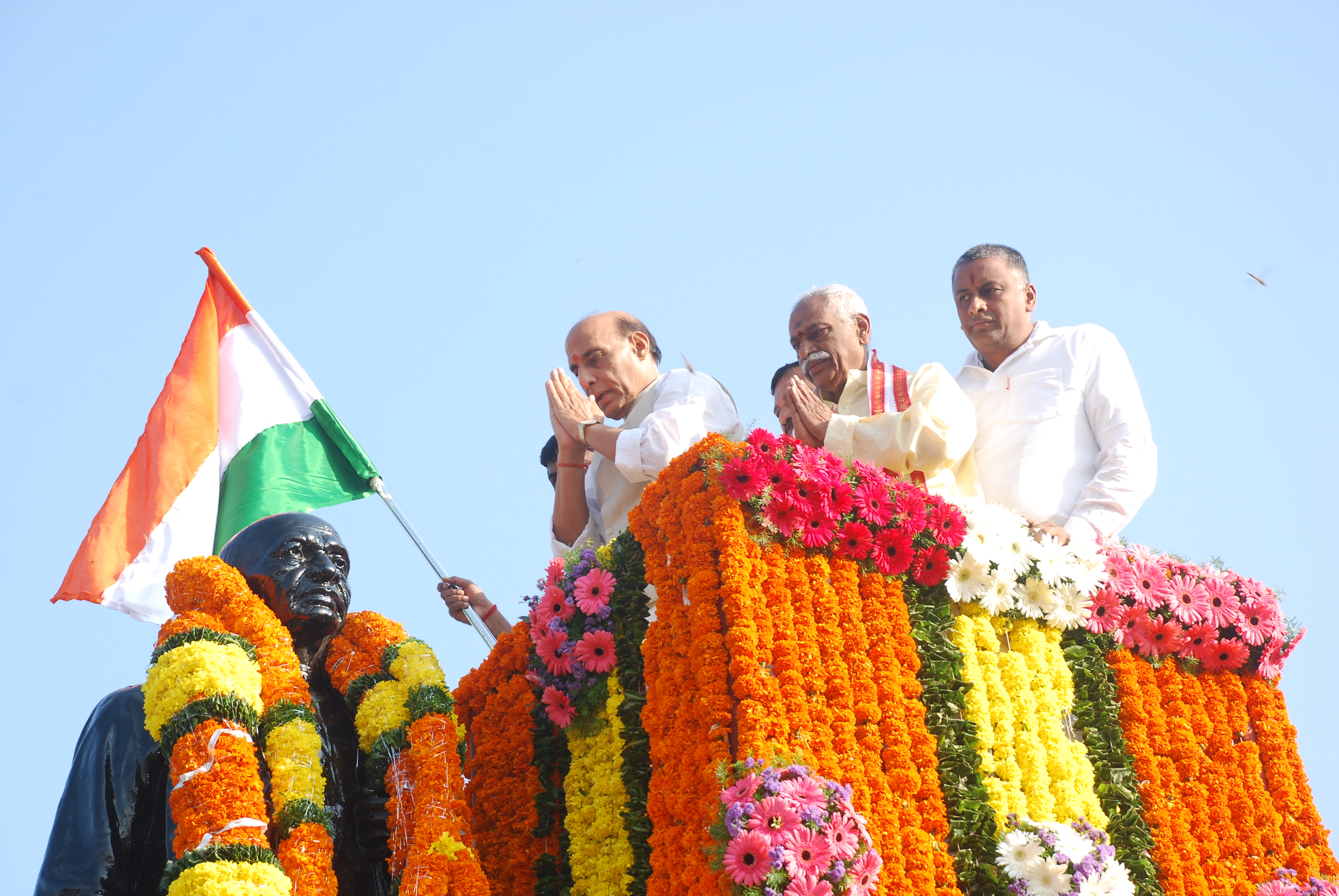 The HM garlanded the statue of Sardar Vallabhbhai Patel in Hyderabad on his birth anniversary.(31-10-2014)
