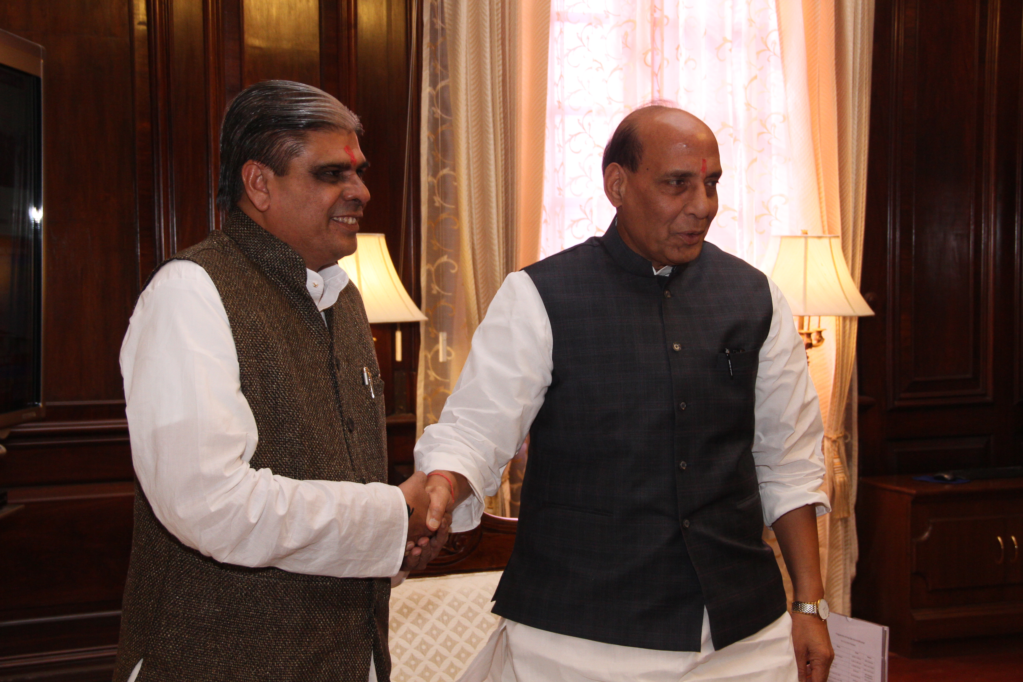 SHRI HARIBHAI PARTHIBHAI CHAUDHARY CALLED ON THE UNION HOME MINISTER SHRI RAJNATH SINGH IN NEW DELHI ON MONDAY, NOV.10, 2014 BEFORE TAKING CHARGE AS THE UNION MINISTER OF STATE FOR HOME AFFAIRS.