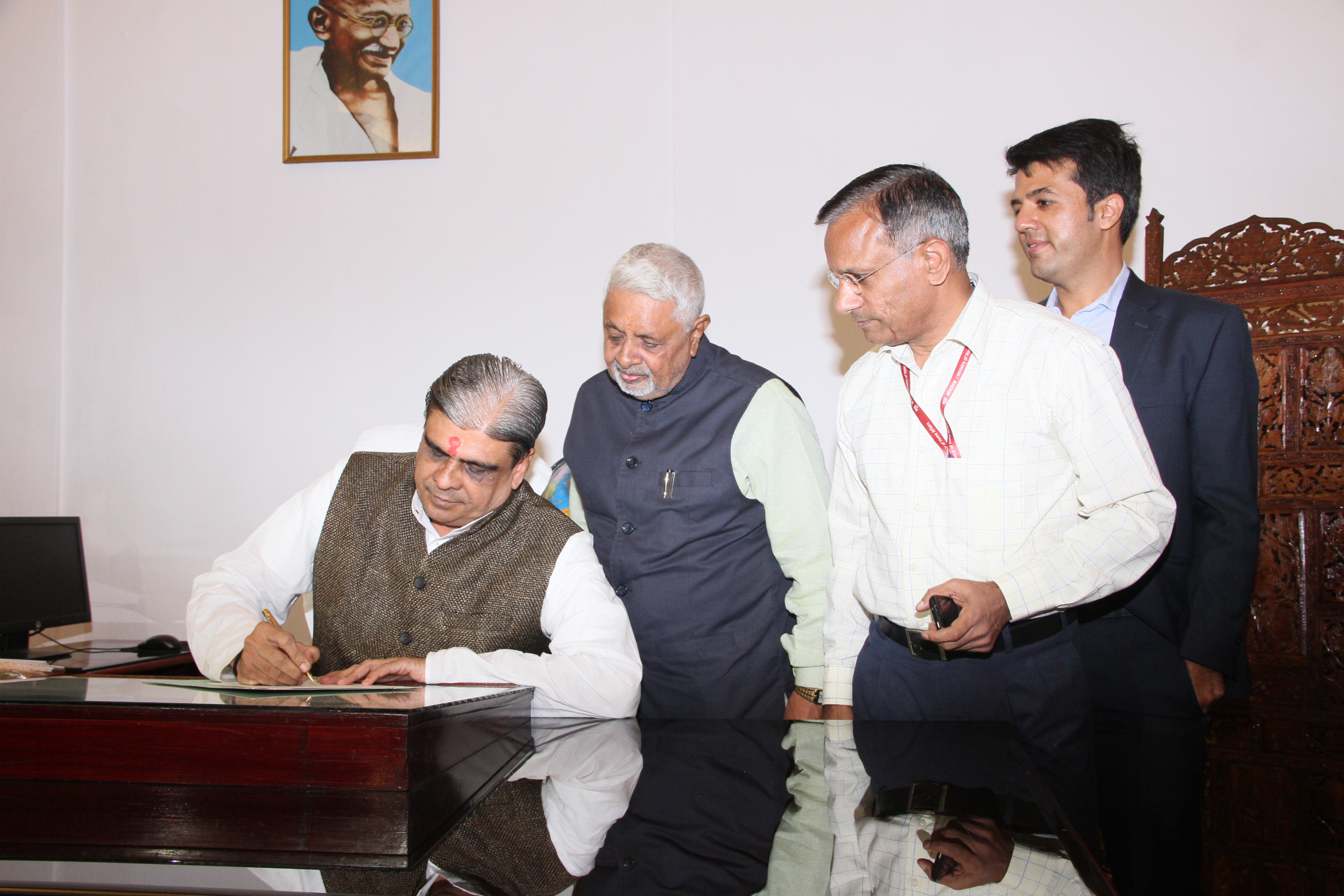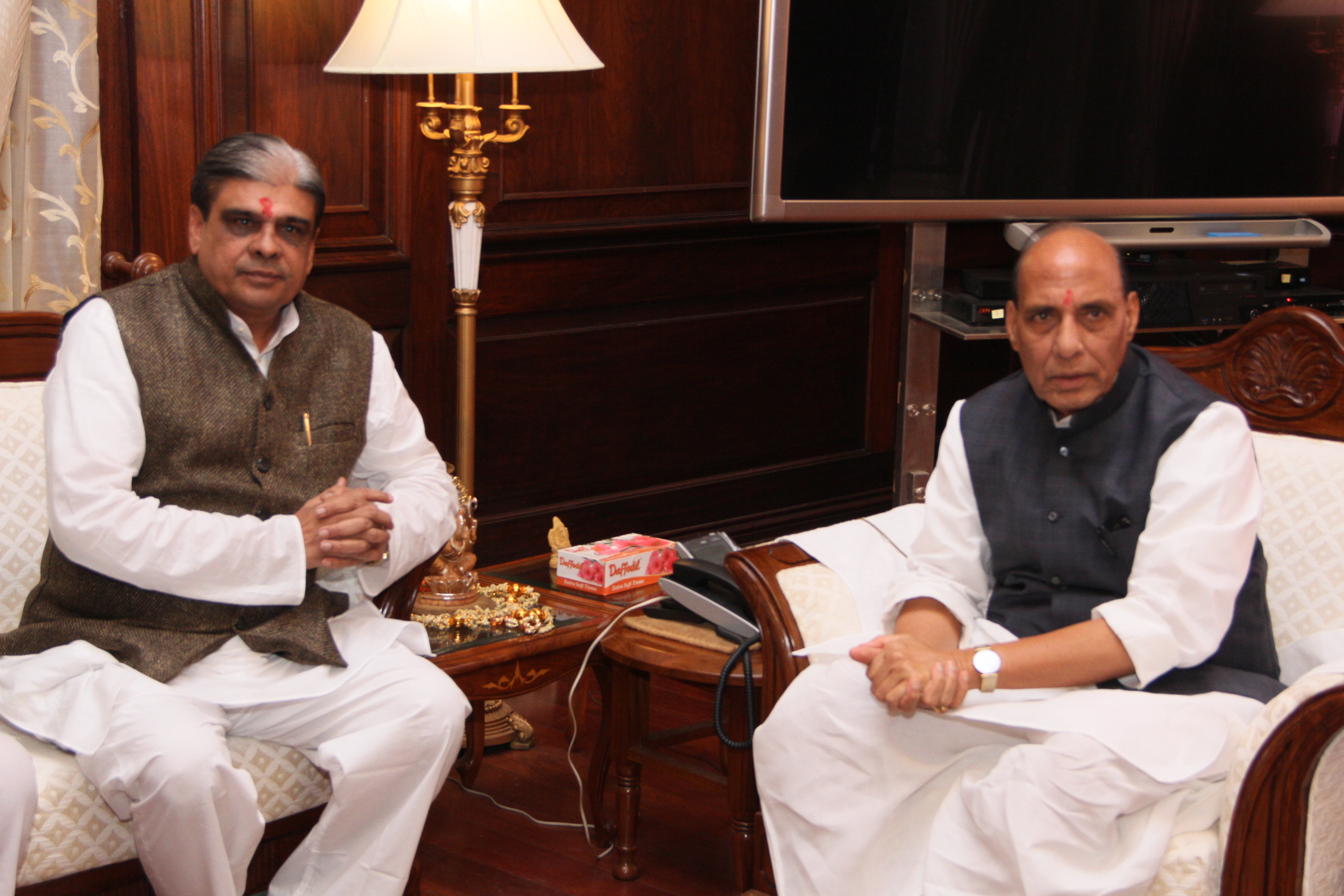 SHRI HARIBHAI PARTHIBHAI CHAUDHARY CALLED ON THE UNION HOME MINISTER SHRI RAJNATH SINGH IN NEW DELHI ON MONDAY, NOV.10, 2014 BEFORE TAKING CHARGE AS THE UNION MINISTER OF STATE FOR HOME AFFAIRS