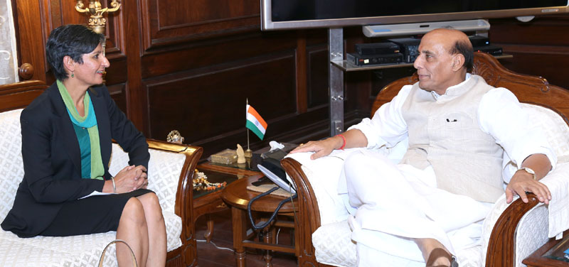 The Australian High Commissioner to India, Ms. Harinder Sidhu calling on the Union Home Minister, Shri Rajnath Singh, in New Delhi on April 21, 2016.