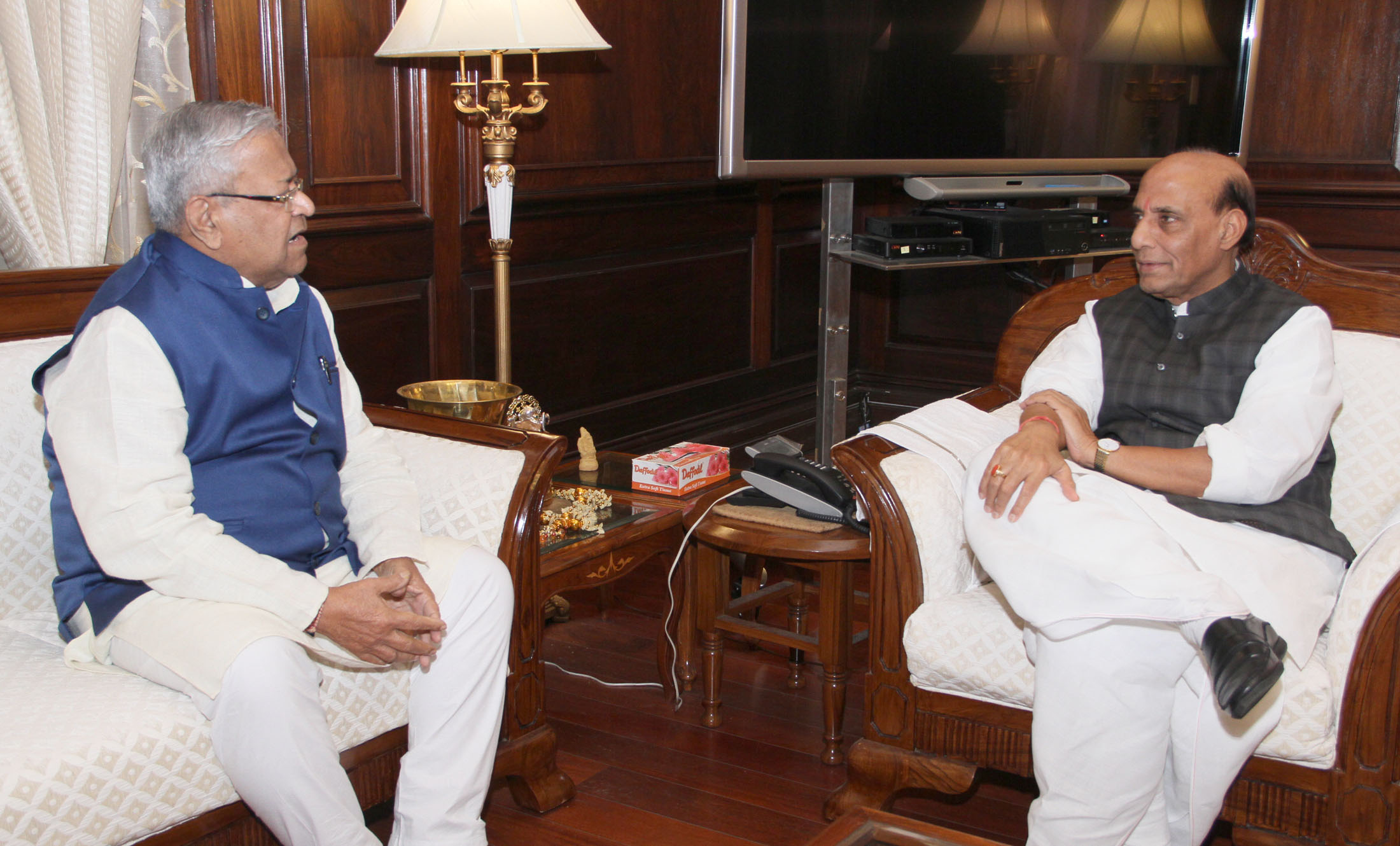 The Governor of Nagaland and Tripura, Shri Padmanabha Balakrishna Acharya calling on the Union Home Minister, Shri Rajnath Singh, in New Delhi on November 12, 2014.