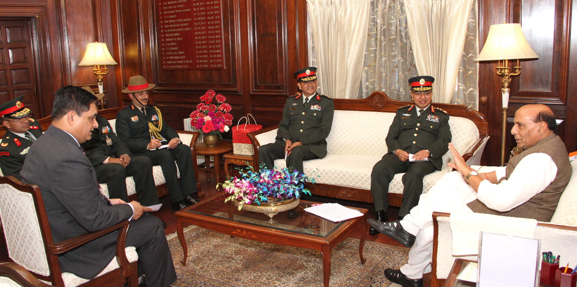 The Nepalese Army Chief, General Rajendra Chhetri calling on the Union Home Minister, Shri Rajnath Singh, in New Delhi on February 02, 2016.