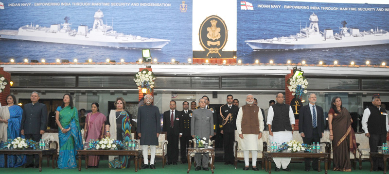 The President, Shri Pranab Mukherjee, the Vice President, Shri Mohd. Hamid Ansari, the Prime Minister, Shri Narendra Modi, the Union Home Minister, Shri Rajnath Singh and other dignitaries during the ‘At Home’ reception, organised by the Chief of Naval Staff, Admiral R.K. Dhowan, on the occasion of Navy Day, in New Delhi on December 04, 2015.