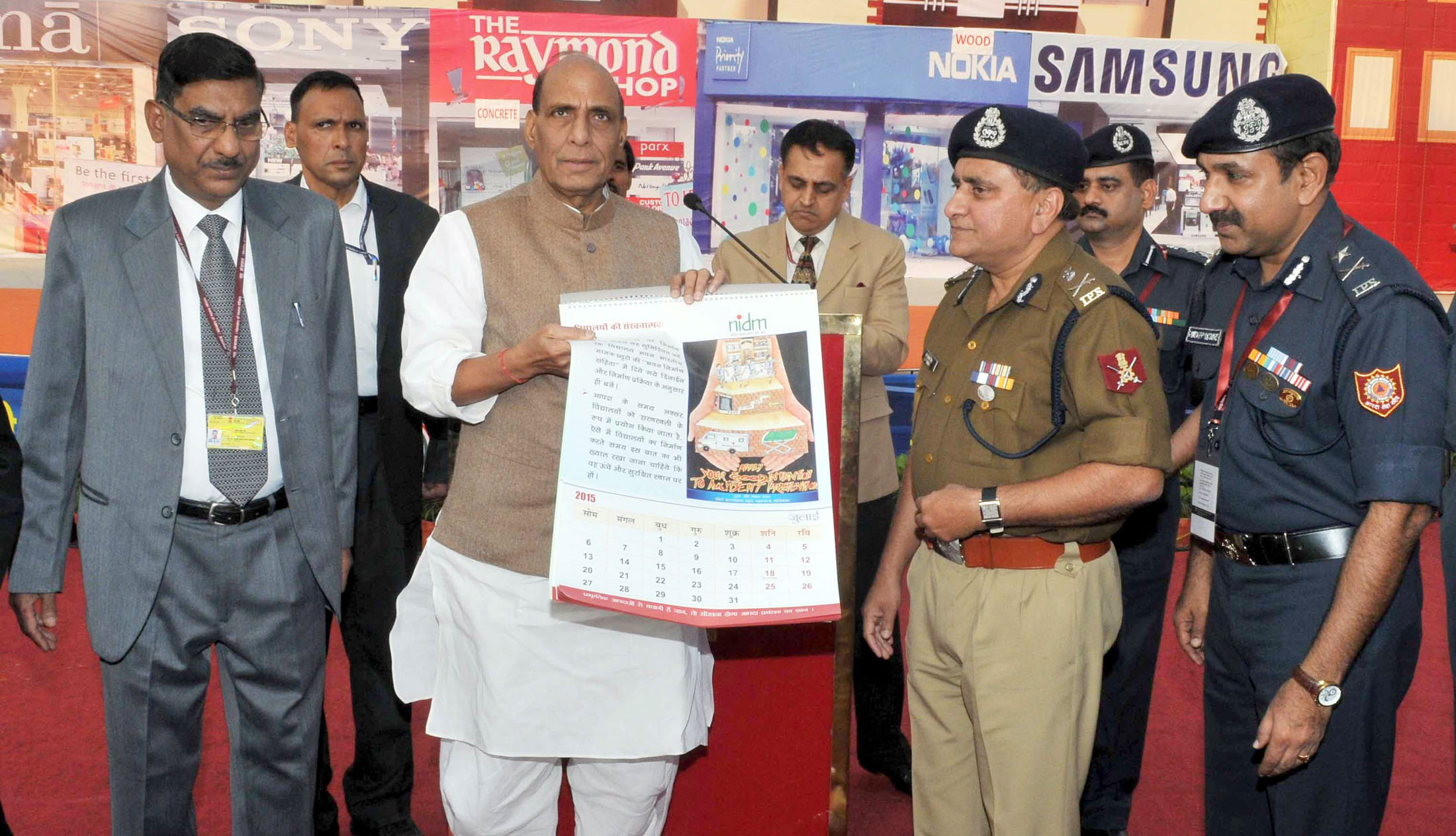 The Union Home Minister, Shri Rajnath Singh releasing a calendar, at the Demonstration of National Disaster Response Force (NDRF), at Pragati Maidan, in New Delhi on November 18, 2014. The Director General, National Disaster Response Force (NDRF), Shri O.P. Singh is also seen.l2014111859253ac The Director General, National Disaster Response Force (NDRF), Shri O.P. Singh presenting a memento to the Union Home Minister, Shri Rajnath Singh, at the Demonstration of National Disaster Response Force (NDRF), at Pragati Maidan, in New Delhil2014111859252ad