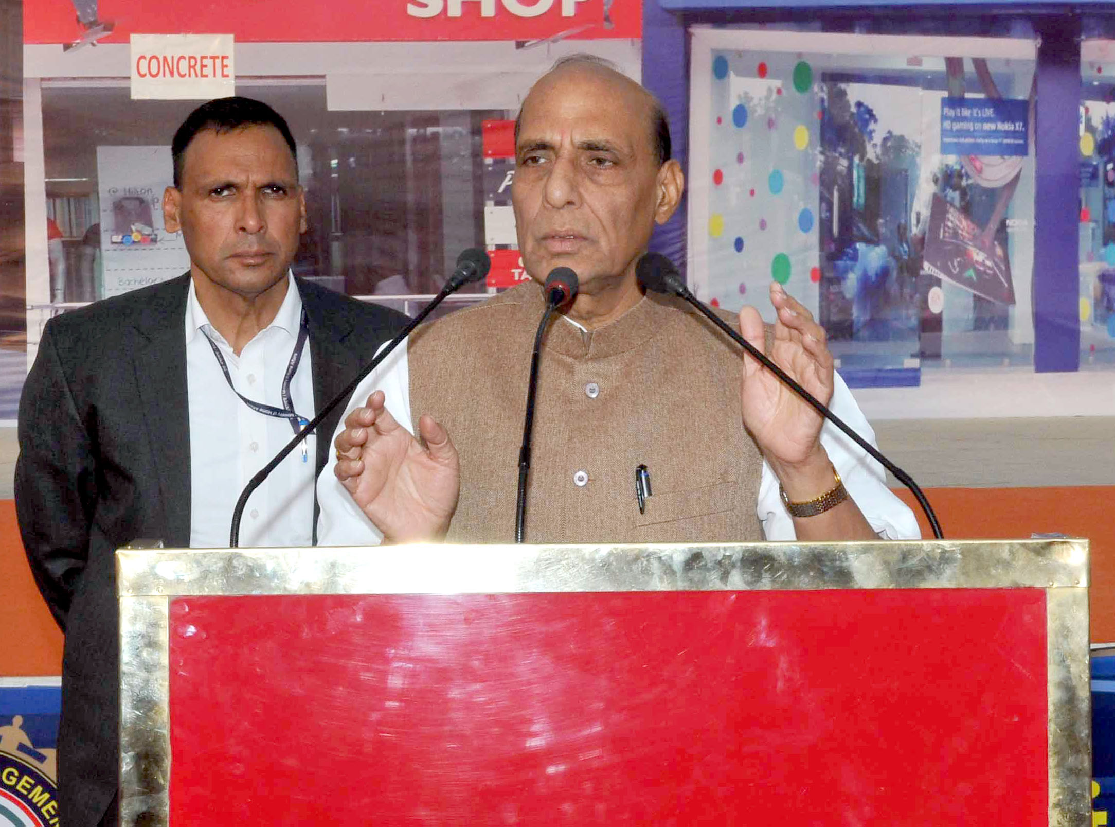 The Union Home Minister, Shri Rajnath Singh addressing at the Demonstration of National Disaster Response Force (NDRF), at Pragati Maidan, in New Delhi