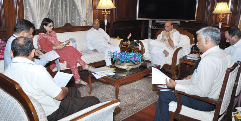 The Union Home Minister, Shri Rajnath Singh chairing a group of Ministers’ meeting on the Rights of Persons with Disabilities Bill, 2014, in New Delhi on April 07, 2016.  The Union Minister for Women and Child Development, Smt. Maneka Sanjay Gandhi, the Union Minister for Social Justice and Empowerment, Shri Thaawar Chand Gehlot and the senior officers are also seen. The Union Home Minister, Shri Rajnath Singh chairing a group of Ministers’ meeting on the Rights of Persons with Disabilities Bill, 2014, in New Delhi on April 07, 2016.