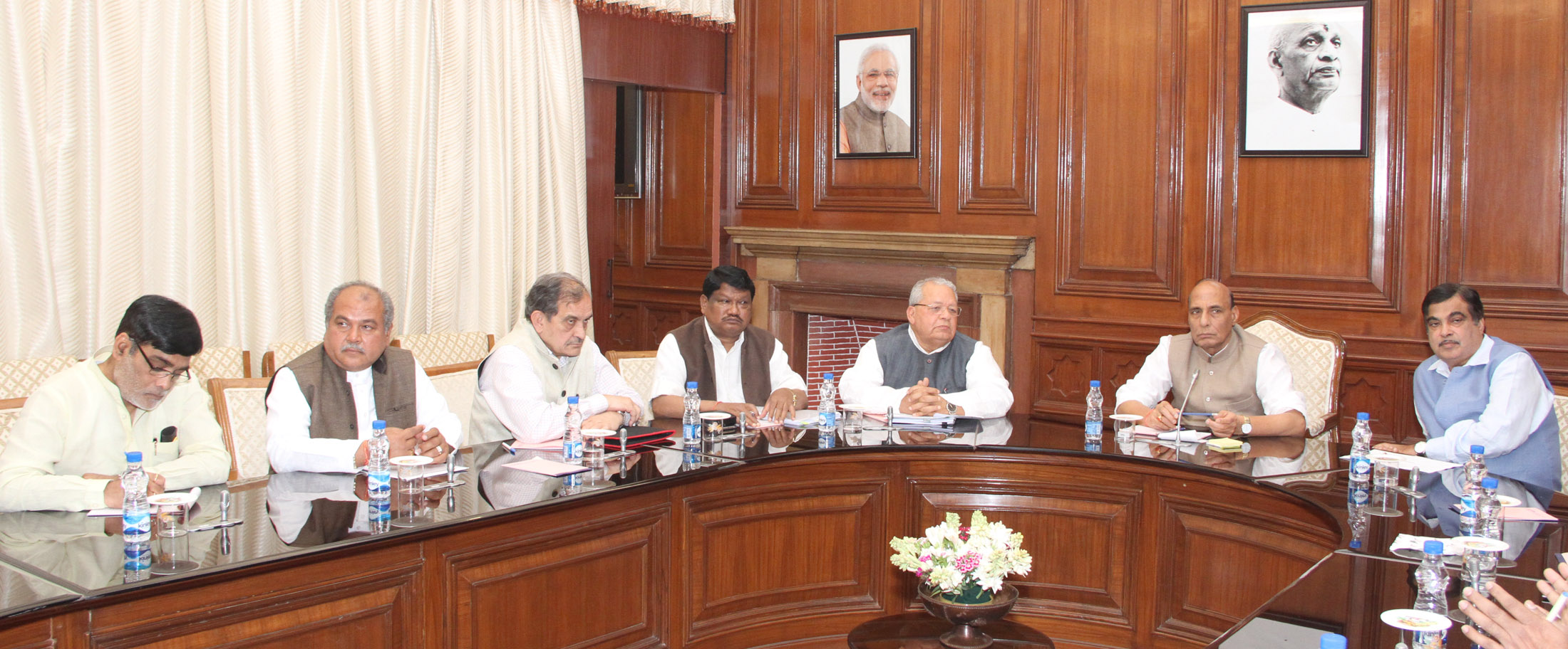 The Union Home Minister, Shri Rajnath Singh chairing the Group of Ministers meeting on the Rural Housing Scheme "Pradhan Mantri Awas Yojana- Gramin", in New Delhi on March 04, 2016.