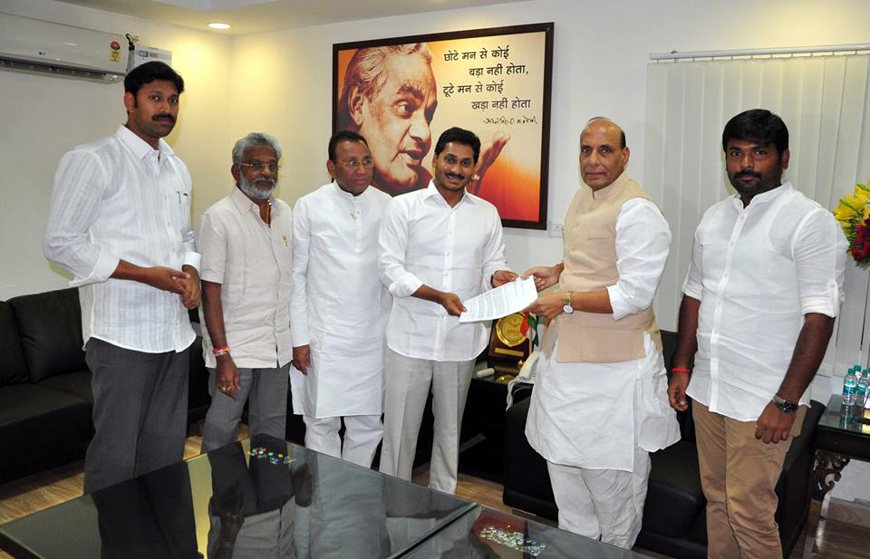 YSR congress party chief Jaganmohan Reddy,along with party MPs to Meeting Union Home Minister Rajnath Singh at his residence in new delhi. (09-11-2014)
