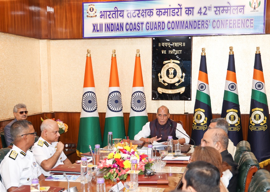 Raksha Mantri Shri Rajnath Singh addressed the inaugural session of the 42nd Indian Coast Guard (ICG) Commanders’ Conference in ICG Headquarters, New Delhi on September 29, 2025, lauding the force’s professionalism and humanitarian service while underlining its critical role in safeguarding India’s 7,500-km-long coastline and island territories. The three-day Conference, being held from September 28 to 30, 2025, brings together the service’s senior leadership to deliberate on strategic, operational, and administrative priorities in the backdrop of evolving maritime security challenges and the growing strategic significance of the Indian Ocean Region.