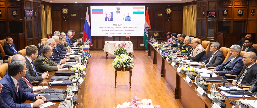 Raksha Mantri Shri Rajnath Singh and the Defence Minister of Russia Mr Andrei Belousov co-chaired the 22nd session of India-Russia Inter-Governmental Commission on Military & Military Technical Cooperation (IRIGC-M&MTC) at Manekshaw Centre, New Delhi on December 04, 2025. Both sides reiterated that the India-Russia relationship is based on a deep sense of trust, common principles and mutual respect. This meeting precedes the 23rd India-Russia Annual Summit between Prime Minister Shri Narendra Modi and President of Russia Mr Vladimir Putin.